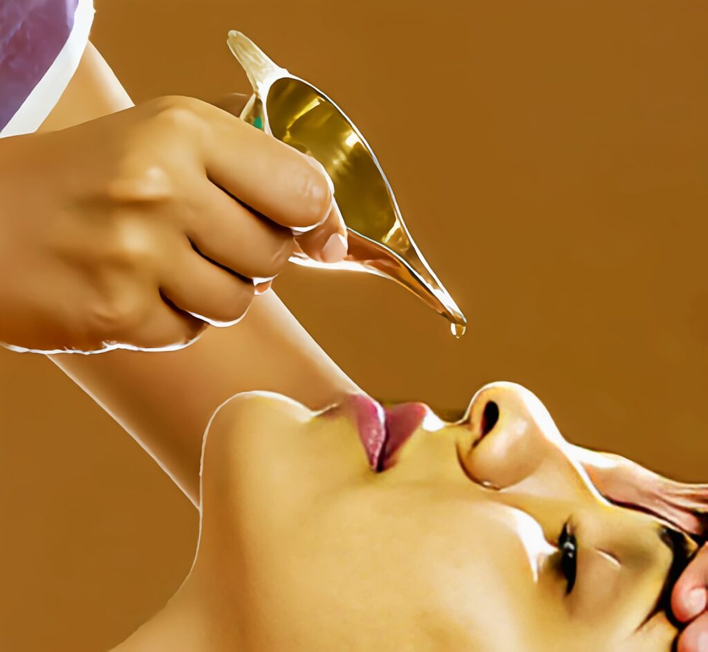 Hair falling, wrinkling of skin, dark spots over skin can be prevented by nasya karma.